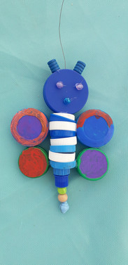 Interventions sur plusieurs matinées au camping LES POMMIERS (Rivières 81) en aout 2022 et 2023 : collage papier, collage tissu, tissage récup', marionnette chaussette, tout plastique, statuette ...